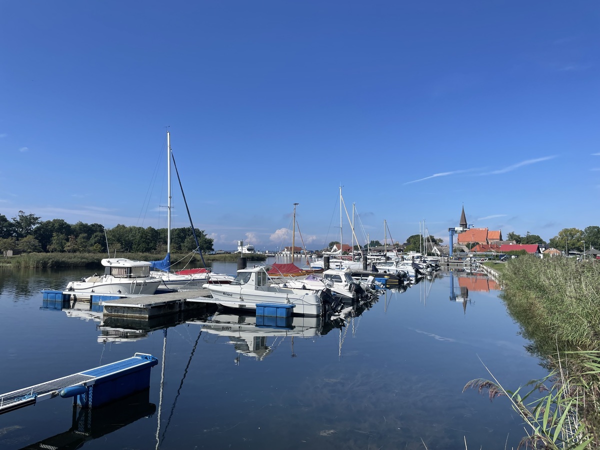 Ein Katzensprung entfernt: Nur wenige Gehminuten vom Ferienhaus Wilke entfernt legen die Schiffe zur autofreien Insel Hiddensee ab. Genießen Sie eine entspannte Überfahrt durch die malerische Boddenlandschaft.